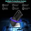 *Protection System*:Built-in advanced circuits and high efficiency power management ensure safe charging. Protect our power bank and electronic devices from overcharging; over-discharging; short-circuiting; over -current and high-temperature protection.