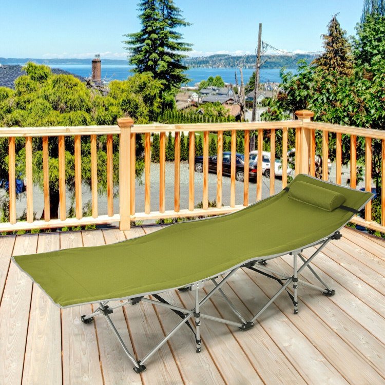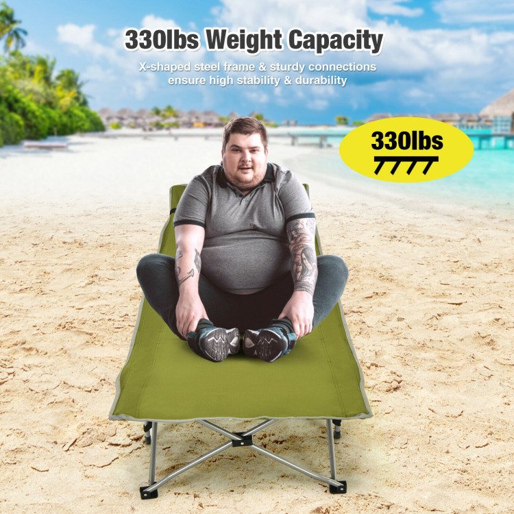 Home > Folding Camping Cot with Side Storage Pocket Detachable Headrest