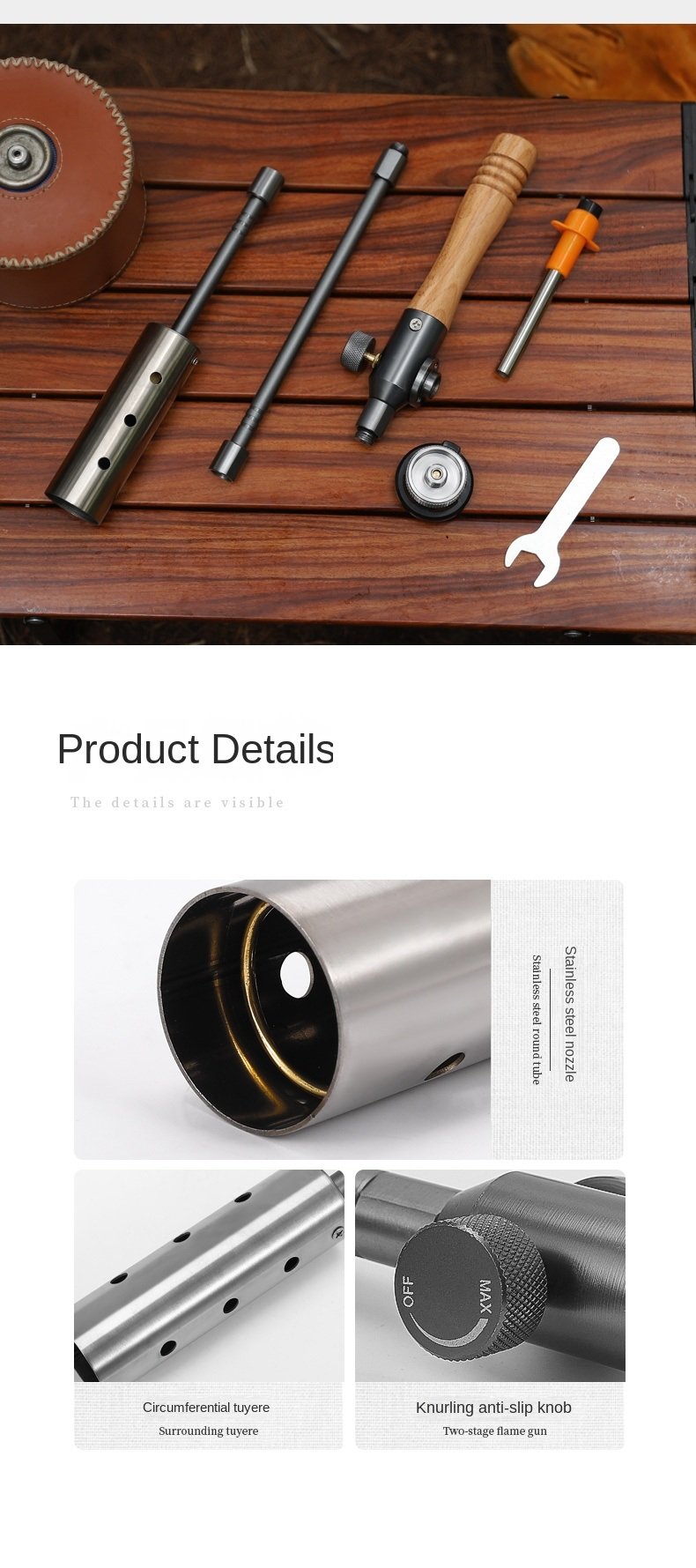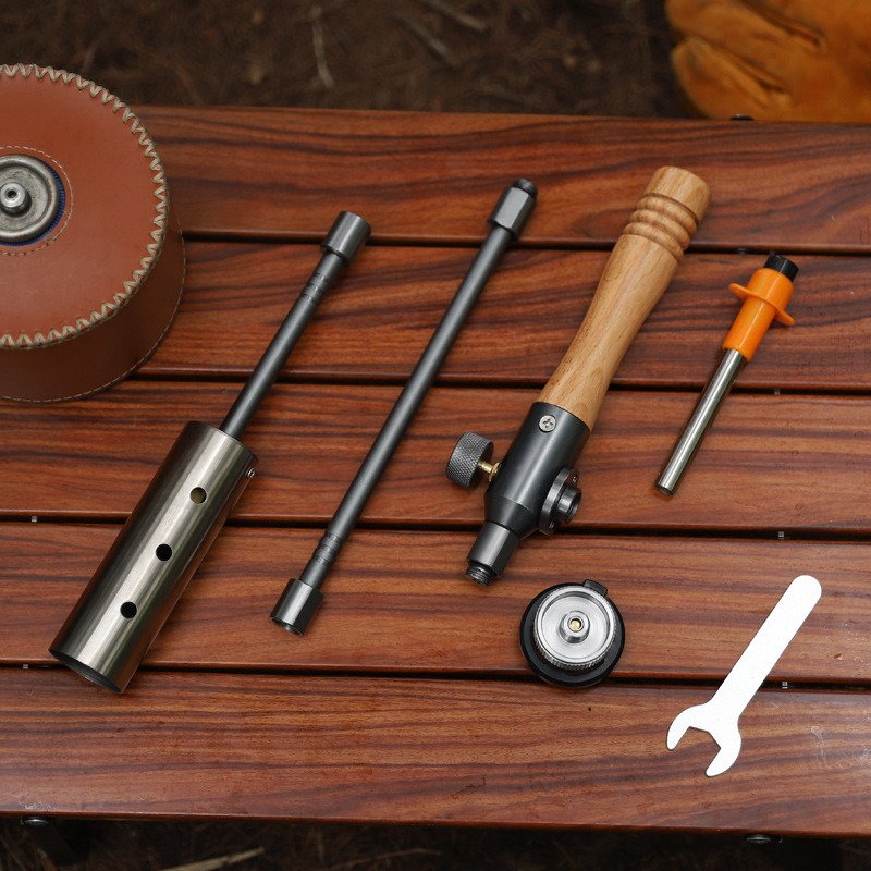 Outdoor camping extended flame-throwing gun stainless steel gun burning pig hair supplies camping straight handle handheld detachable igniter